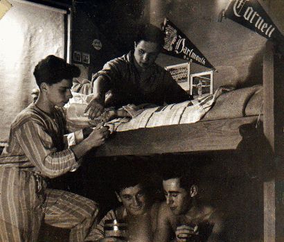 A promotional still from the prize-winning film short This Is My School directed by Cherry Lawn students Larry Frisch and Mario Mercado in 1946. The scene is a dorm room in Boy's House.
