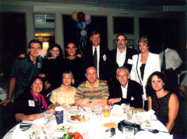 (Table 14: Front Row: Bob Conroy (spouse), Estelle Verner David-'67, Ken Mandell-'66, Max Goldsmith (spouse); Second Row: unknown, Fullis (Shapiro) Conroy-'67, Aline (Romano) Goldsmith-'66, Louie & Debby (Lees) Bleier-'66; Back Row: Alex Popow-'66, Arnie Kaye-'66) |