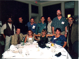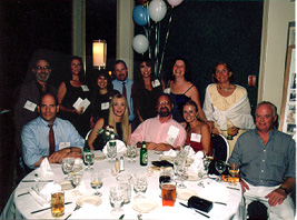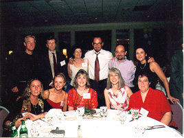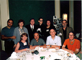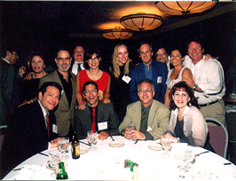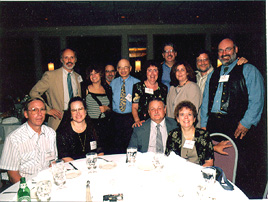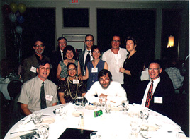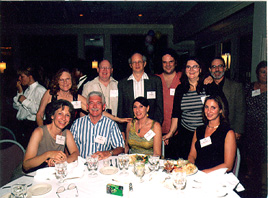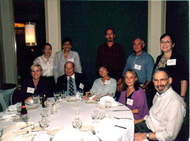 (Table 13: Seated: Reid Richards (friend), Sylvia Gabe-'73, Ami Hartley-'73, Dianne Grossman-'68; Standing: Peter Lewis-'71, Ron Brandman-'69, David Bates-'71, Peter Miller-'68, Dennis Osrow-'68, Don Meyer (spouse), Jeff Sinaiwsky (spouse)) |