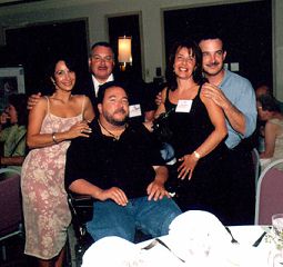 (Table 3: Seated: Jamie Lembeck-'71; Standing: Angela Rubin (friend), Michael Proper-'71, friend of Peter Lembeck, Peter Lembeck (brother)) |