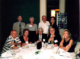 (Table 1: Seated: Barbara Beitscher-'63, Laurie Bilik-'63, Robert Romano'63, Pedro Gonsenheimer'63, Susan Shepherd (spouse); Standing: Richard Bradbury Houghton (spouse), Jennifer Neustat (spouse), Stephen Neustat-'63, Craig B. Varden-'63, John Shepherd-'63, Dianne Varden (spouse)) |